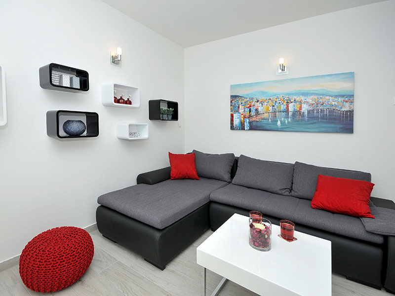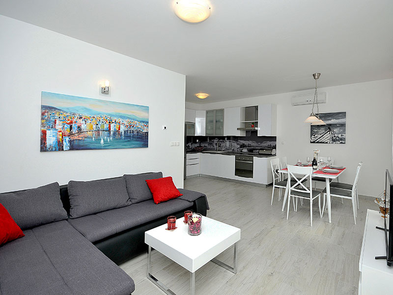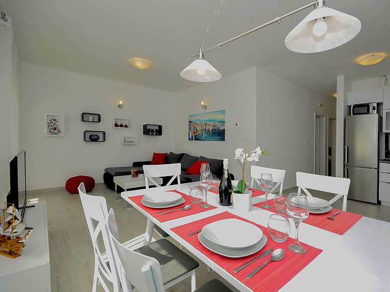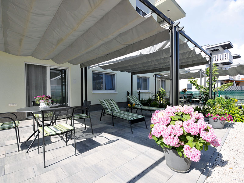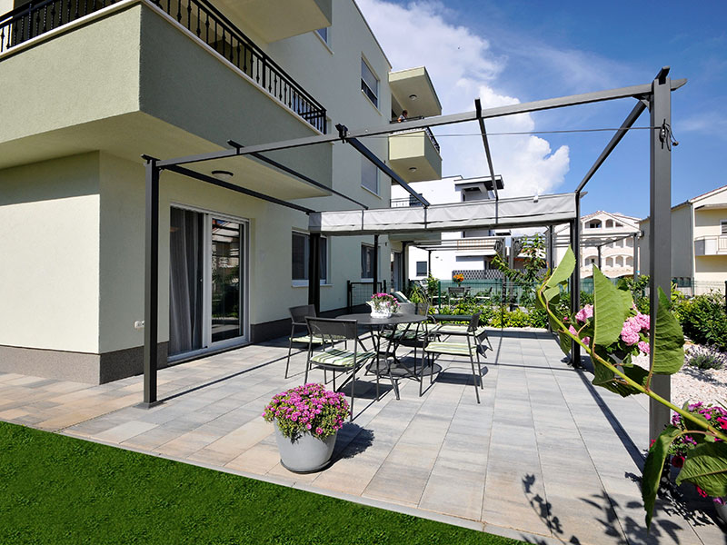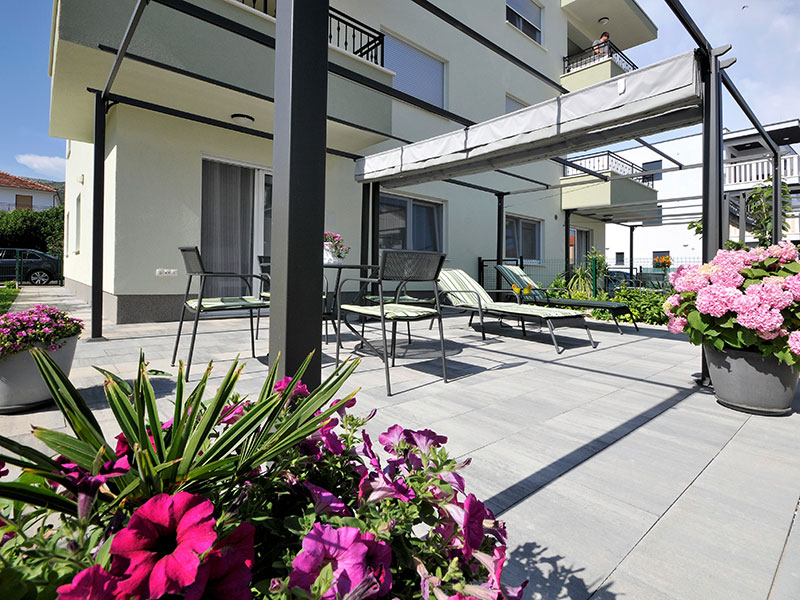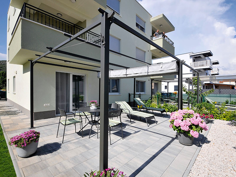 Private apartment with private entrance in small building located on 1st floor. Has terrace with outdoor furniture and dining area.